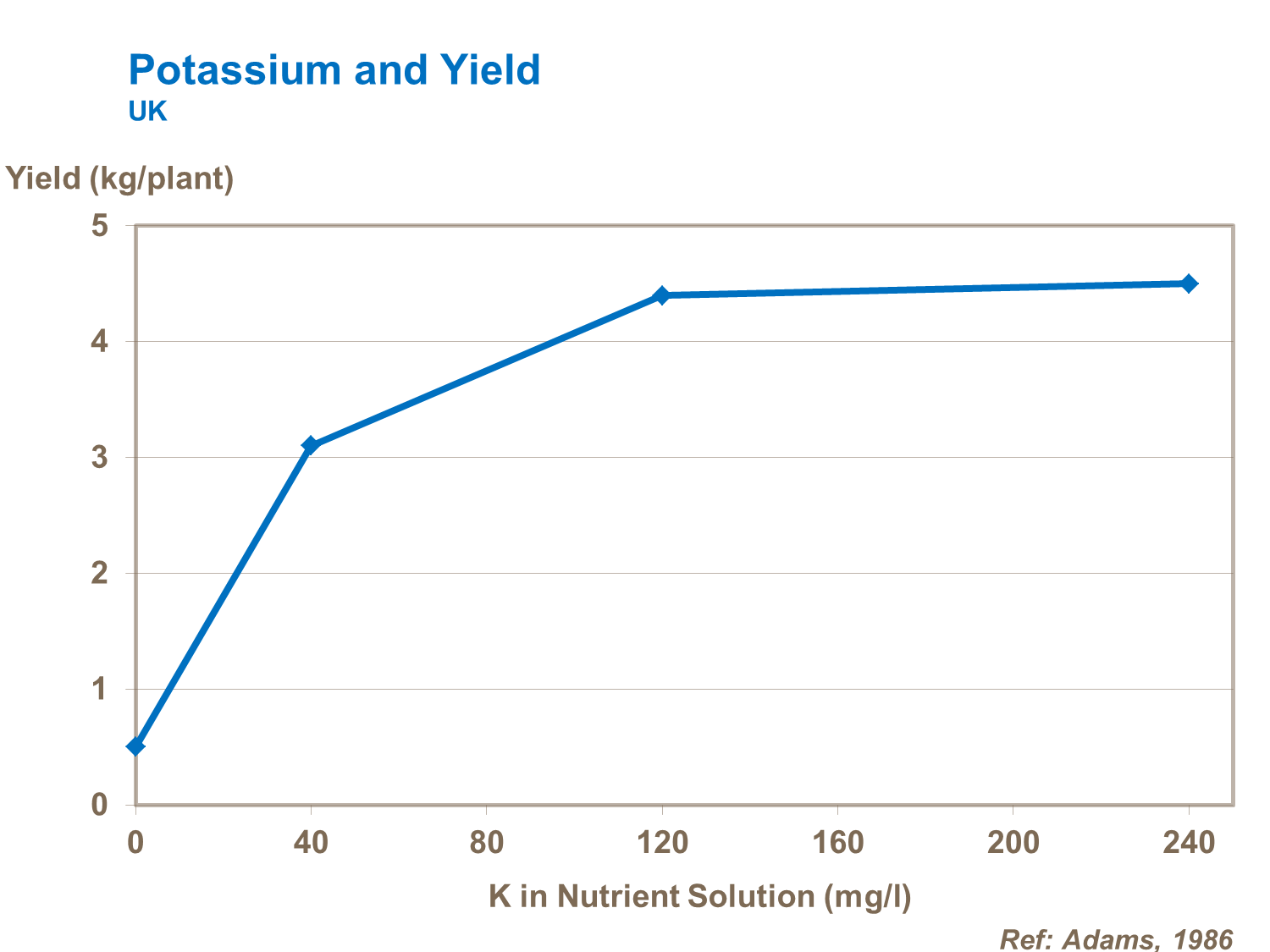 Tomatoes have a relatively high potassium requirement with over 300kg/ha of potassium typically being utilized. High potassium levels provide high tomato yields. Balance to other nutrients such as calcium and magnesium is also important.